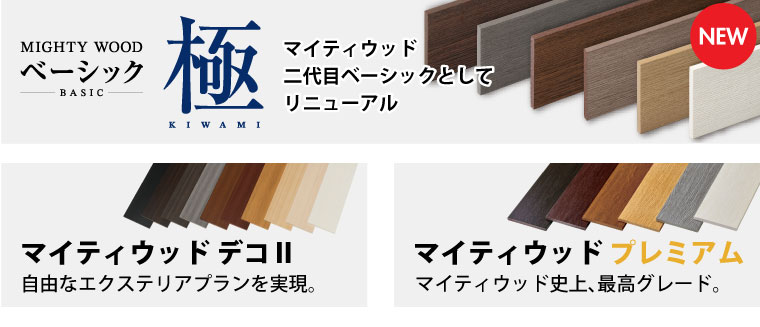 マイティウッドは、新しい発想から生れた素材で、木材と違い腐食はせず、色褪せしにくいメンテナンスフリーの素材です。有害物質を含んでおりませんので、環境に優しいエクステリア向け資材です。