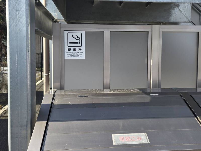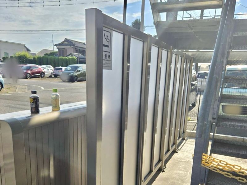 喫煙スペースの周りを目隠しのパネルで囲みました。